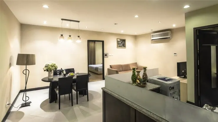 The hotel has fully equipped guest rooms which are decorated in accordance with international standards. They have separate bedrooms and living rooms. Standard amenities in all rooms include air conditioning, hot water, cable TV, a fridge, hairdryer, telephone and wireless Internet access. All are also en suite with a shower and bath. Double or king-size beds are available. A safe, minibar, tea and coffee making facilities, and a balcony or terrace also come as standard.