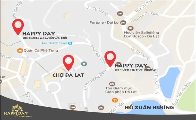 - Tọa lạc tại trung tâm Đà Lạt, Happy Day II Hotel là điểm đến lý tưởng để bạn khám phá Đà Lạt và những điểm thú vị xung quanh. Chỉ cách trung tâm thành phố 0,2km, khách hàng của chúng tôi sẽ có một vị trí tuyệt vời để tận hưởng những điểm du lịch nổi tiếng và các hoạt động tại thành phố này.