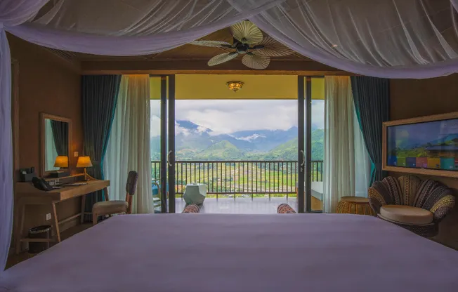 Le Champ Tú Lệ Resort được coi là thiên đàng nghỉ dưỡng cao cấp đầu tiên tại Yên Bái. Chúng tôi tự hào về khung cảnh thiên nhiên hùng vĩ tại vùng núi Tây Bắc, và khu nghỉ dưỡng của chúng tôi nằm giữa những cảnh đẹp đó. Resort được xây dựng dọc theo sườn núi, mang đến không gian hấp dẫn với tầm nhìn ruộng bậc thang xanh ngút ngàn và núi non hùng vĩ.