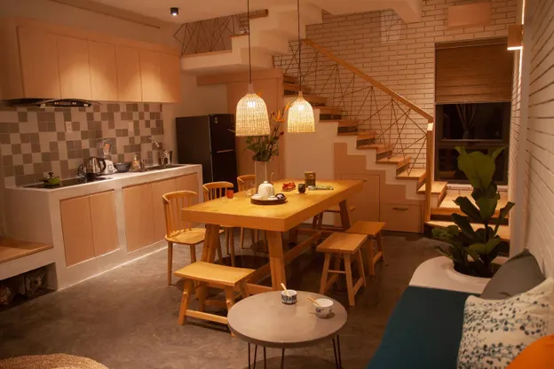 - Bếp và đồ dùng bếp đầy đủ.