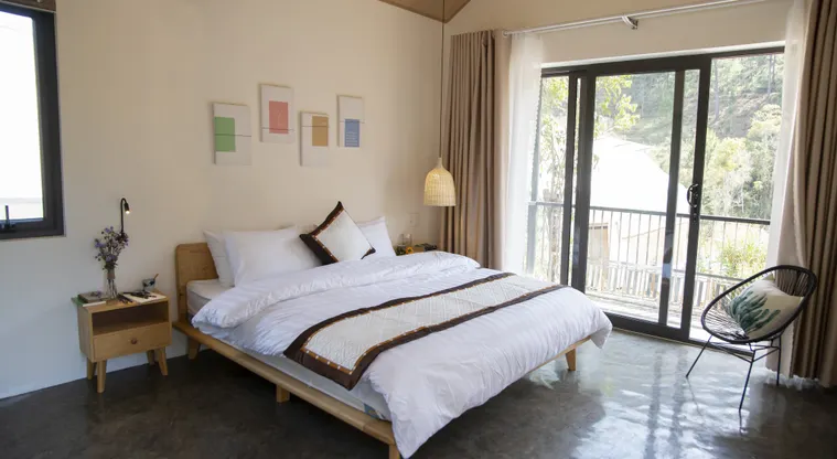 - Phòng Cottage 1 phòng ngủ: Phòng đôi với nhà vệ sinh kín, diện tích 45m2, view núi và suối